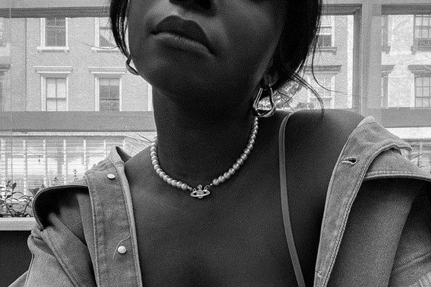 Keep up a soft appearance with the feminine charm of a pearl necklace to bring out your inner Nana Komatsu.
